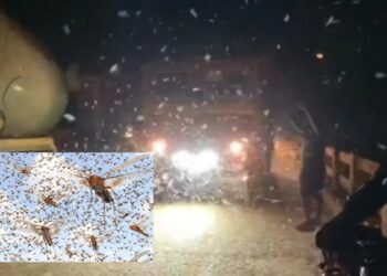 A massive swarm of insects caused significant disruption to traffic on the Kharasrota Bridge in Jajpur, Odisha, on November 8, ...
