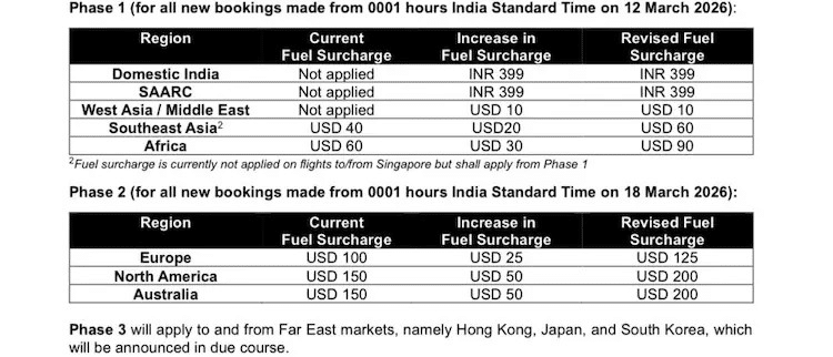 Air India has announced a phased fuel surcharge on tickets as aviation turbine fuel (ATF) prices surge due to supply disruptions in the Gulf region linked to the ongoing Iran war.