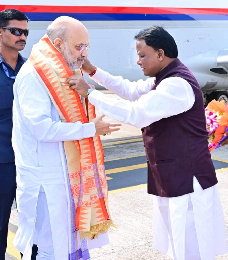 Amit Shah Lands in Bhubaneswar, Welcomed by CM Majhi