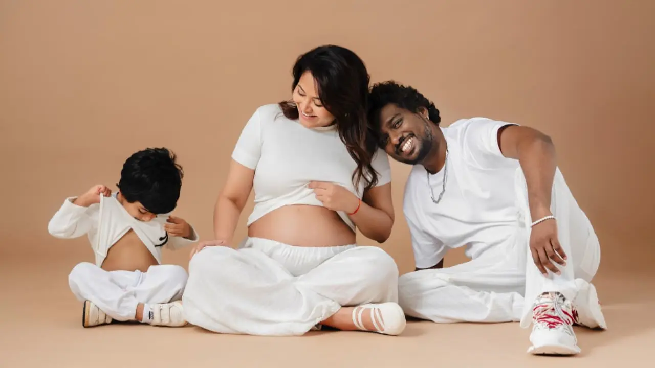 Adding to the charm, the family’s pets are also part of the shoot, creating an intimate and homely atmosphere. Announcing the pregnancy, Priya wrote a heartfelt caption that included every family member—humans and fur babies alike.
