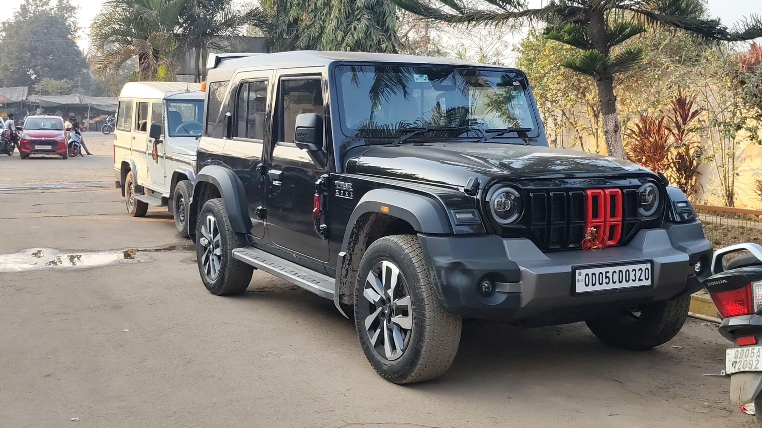Police seized a black Thar SUV (registration OD 05CD 0320), mobile phones, and several weapons from the accused.