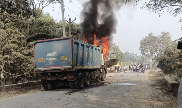 The incident triggered anger among locals, who staged a road blockade and set fire to four trucks on the highway. The protest created tension in the area, with traffic movement disrupted for hours.