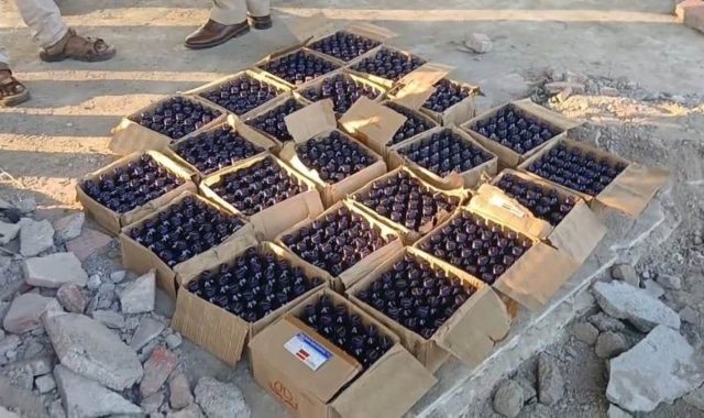 Officers seized 900 bottles packed in 24 crates from two large bags on Platform No. 2.