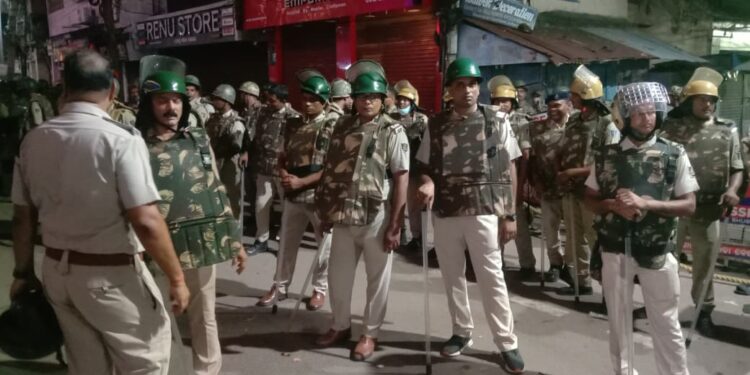 Heavy police deployment continues in sensitive areas, with officials conducting flag marches and community outreach to restore confidence among residents.