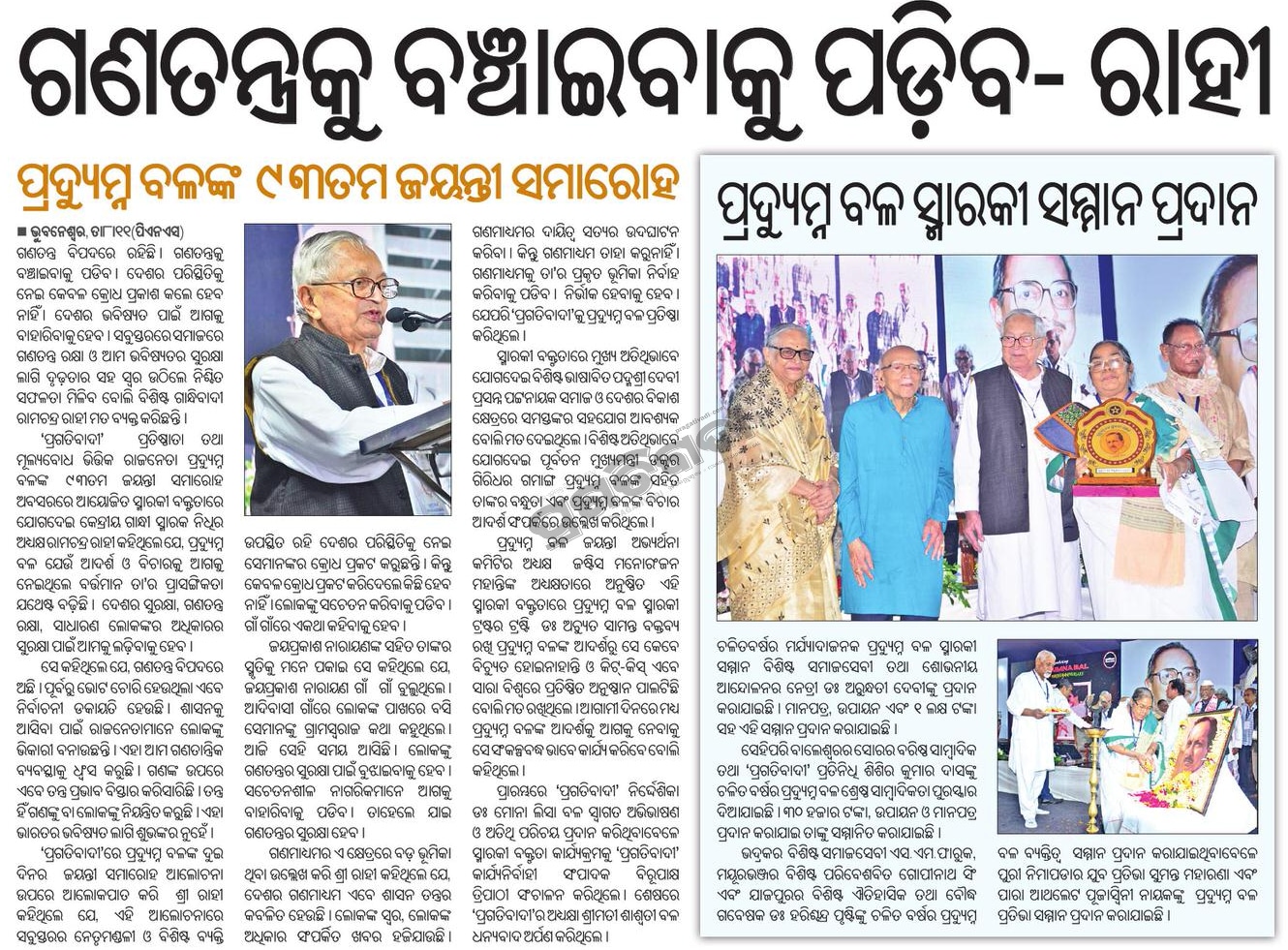 Speaking at the memorial lecture organised on the occasion of the 93rd birth anniversary of Pradyumna Bal, the Founder Editor of ‘Pragativadi’ and a value-based politician, Rahi, who serves as the Chairman of the Central Gandhi Smarak Nidhi, highlighted the enduring relevance of Bal’s ideals and thoughts in today’s context. “The principles and visions that Pradyumna Bal advanced have become even more pertinent now,” Rahi stated. “We must fight to protect the nation’s security, defend democracy, and uphold the rights of ordinary people.”