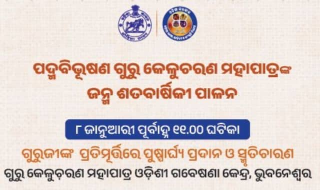 ପଦ୍ମବିଭୂଷଣ ଗୁରୁ କେଳୁଚରଣ ମହାପାତ୍ରଙ୍କ ଜନ୍ମ ଶତବାର୍ଷିକୀ ପାଳନ ଅବସରରେ ଆପଣମାନଙ୍କୁ ସାଦର ନିମନ୍ତ୍ରଣ ।