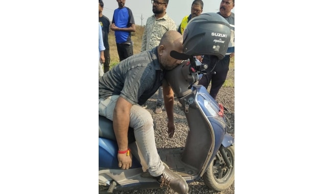 The deceased, identified as Debasish Swain from Betanati village in Mayurbhanj district, was found seated on his scooter.