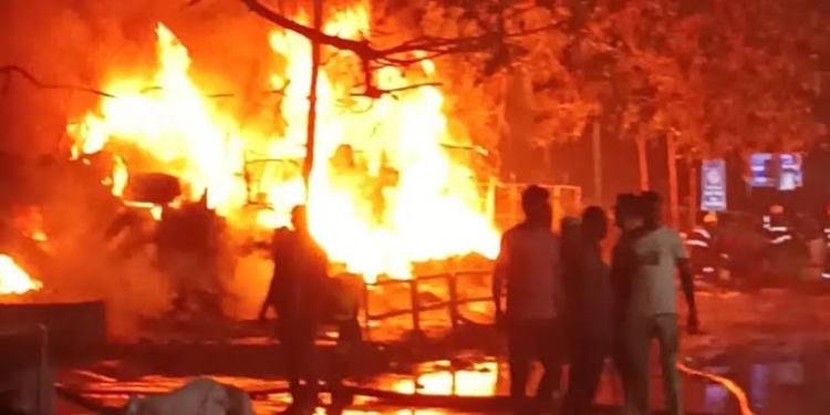 A massive fire broke out at Unit-1 Market in Bhubaneswar late Monday night, reducing more than 40 shops to ashes and causing extensive property damage. Fortunately, no injuries or loss of life were reported, according to fire service officials.