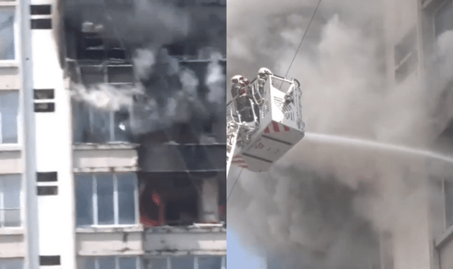 Firefighters rushed to the scene with multiple fire tenders and launched a high-intensity operation using aerial ladders to contain the flames. Visuals from the site showed thick smoke billowing from the building as teams worked to douse the fire.