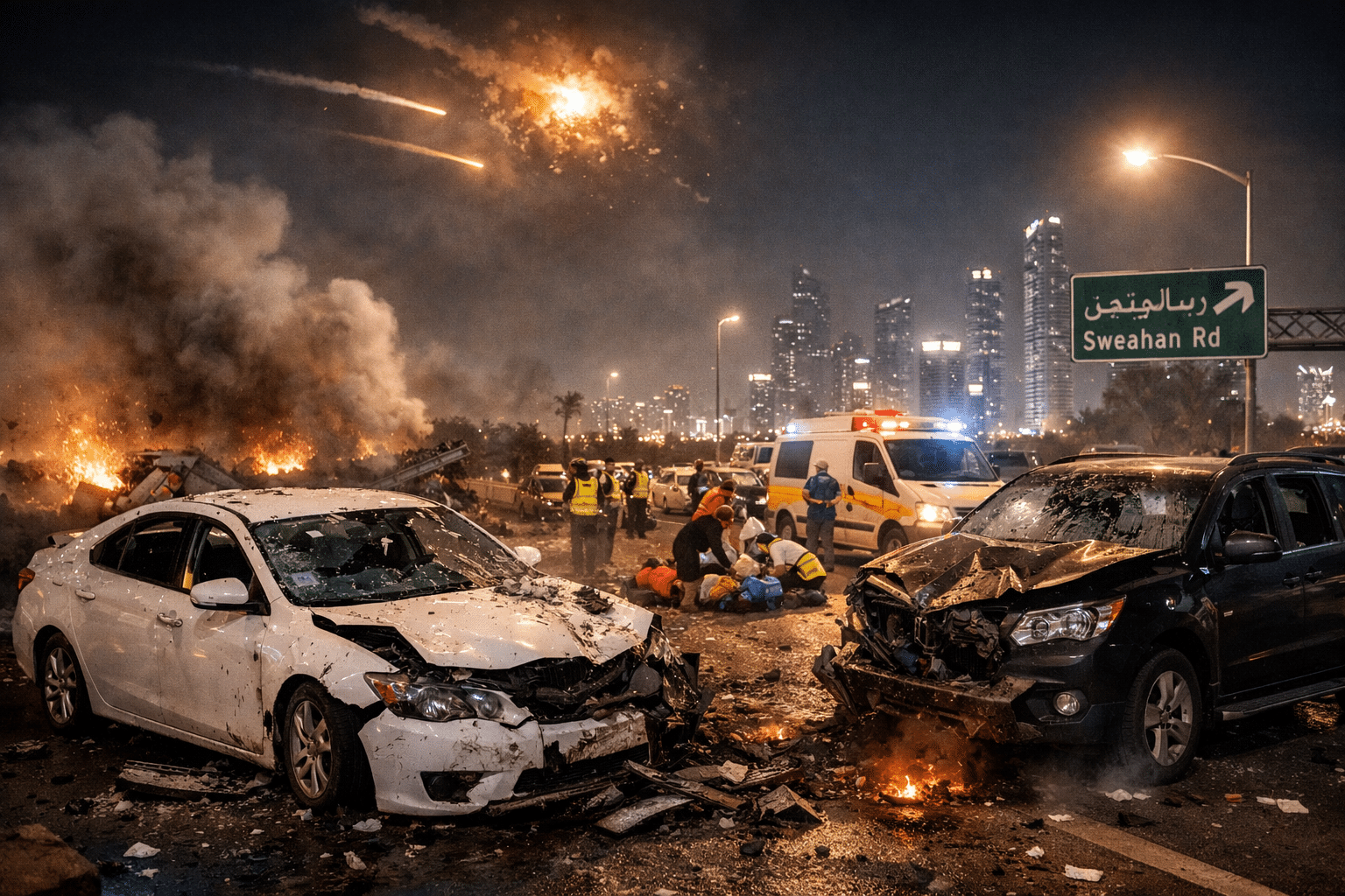 The missile interception occurred over the UAE capital, but fragments from the destroyed projectile fell on a busy road, striking vehicles and pedestrians. Emergency teams responded immediately. The victims remain unidentified, and the injured are receiving medical care.