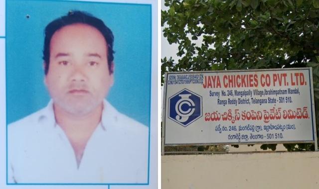 The deceased, Parshuram Bag (46), was employed at Jaya Chikis Co. Pvt. Ltd., Mangalpalli village, Ibrahimpatnam mandal. Family members said he collapsed during duty hours due to a sudden heart attack. He was reportedly a diabetic patient.