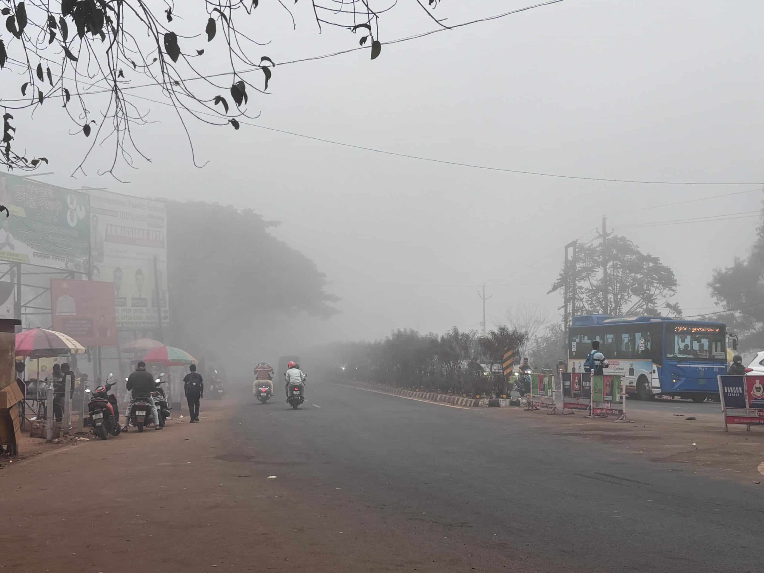 A very dense fog warning has been issued for the next five days. For Sunday morning, an orange warning is in place for Nayagarh, Cuttack, Khordha, Puri, Jagatsinghpur, and Kendrapara districts, while a yellow warning covers 12 districts.