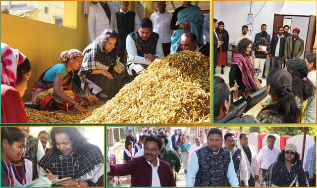 In Phiringia and Nuagaon blocks, she inspected agricultural initiatives, including a turmeric processing centre, millet cultivation, and integrated farming systems supporting strawberry, marigold, and pea crops under the Odisha Livelihoods Mission, Horticulture Department, and ITDA.