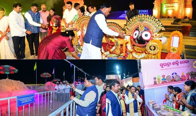 Chief Minister Mohan Charan Majhi today inaugurated the 36th world-famous Konark Festival, the 15th International Sand Art Festival at Chandrabhaga beach, and the Subhadra Shakti Mela, marking a vibrant start to Odisha’s premier cultural extravaganza against the majestic backdrop of the UNESCO World Heritage Konark Sun Temple.