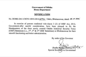 The Government of Odisha has designated Bhubaneswar as the headquarters for the 2nd, 3rd, and 4th battalions of the Odisha Industrial Security Force (OISF).