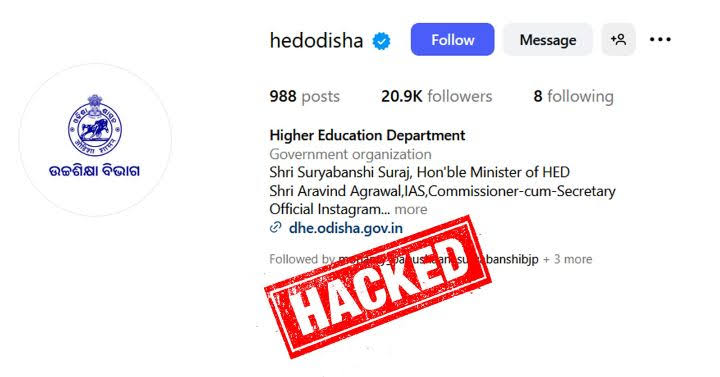 The Instagram account of the Higher Education Department of Odisha was briefly hacked on Monday morning, with several unrelated posts being uploaded.