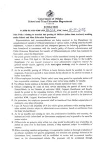 The Government of Odisha’s School and Mass Education Department has released a comprehensive resolution outlining the transfer and posting policy for officers (excluding teachers) under its jurisdiction.