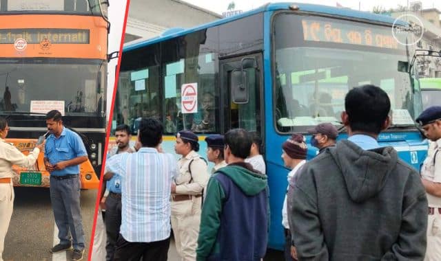 In a dramatic incident during Sunday’s checks, one Ama Bus attempted to evade inspection near Master Canteen, leading to a police chase; it was apprehended near Damana Square, seized by Kharavel Nagar police, and the driver was detained for questioning. CCTV footage captured the escape attempt.