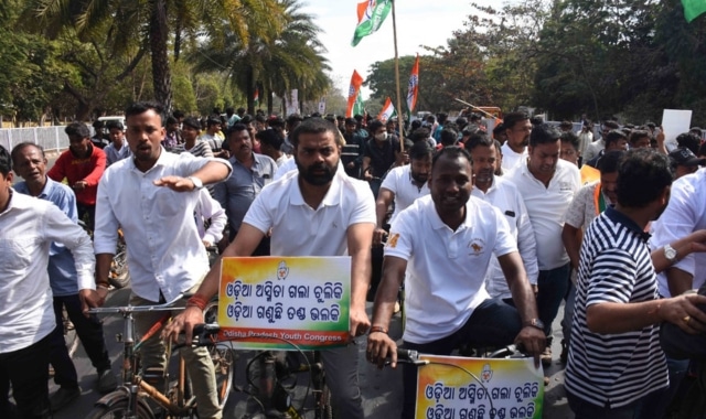 The Youth Congress staged a protest on Saturday by gheraoing the official residence of Odisha Transport Minister Bibhuti Bhusan Jena in Bhubaneswar over the Pollution Under Control Certificate (PUCC) issue.