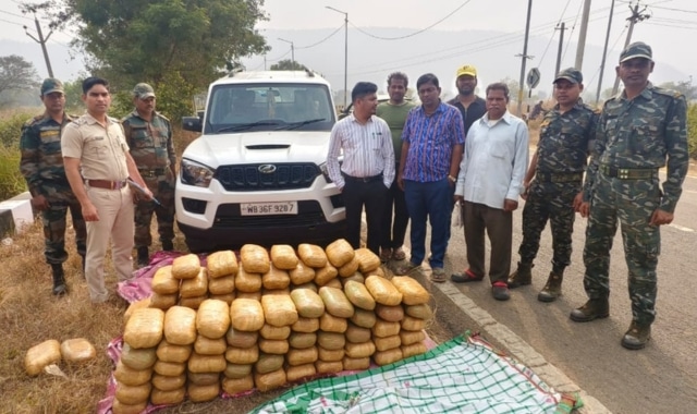 Police seized 106 kilograms of ganja late Sunday night on the Deogarh–Riamal road. The contraband was being smuggled in a Scorpio vehicle when the traffickers attempted to flee after ramming into a police van.