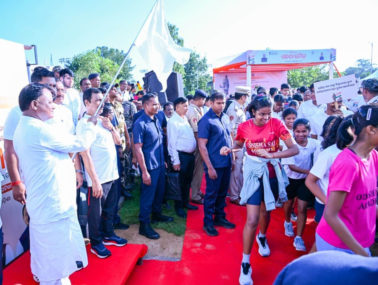 Odisha Chief Minister Mohan Charan Majhi kicked off the Run for Unity at Kalinga Stadium in Bhubaneswar, marking the 150th birth anniversary of Sardar Vallabhbhai Patel.
