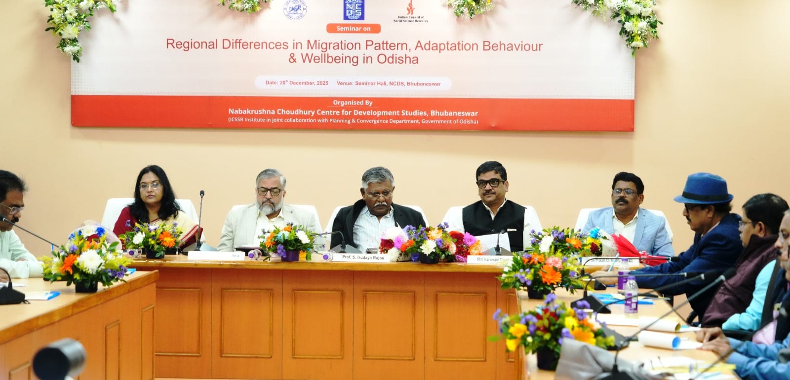 The Nabakrushna Choudhury Centre for Development Studies (NCDS), Bhubaneswar, hosted a landmark one-day seminar on “Regional Differences in Migration Pattern, Adaptation Behaviour and Wellbeing in Odisha”, bringing together senior government officials, eminent scholars, and researchers to discuss actionable strategies for inclusive migration policies.