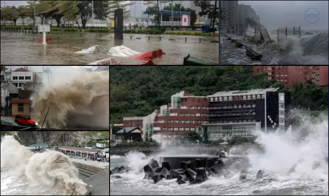 Hong Kong experienced hurricane-force winds reaching 195 kph, causing injuries to over 90 people and widespread property damage. Viral footage showed seawater smashing through the glass doors of the Fullerton Ocean Park Hotel.