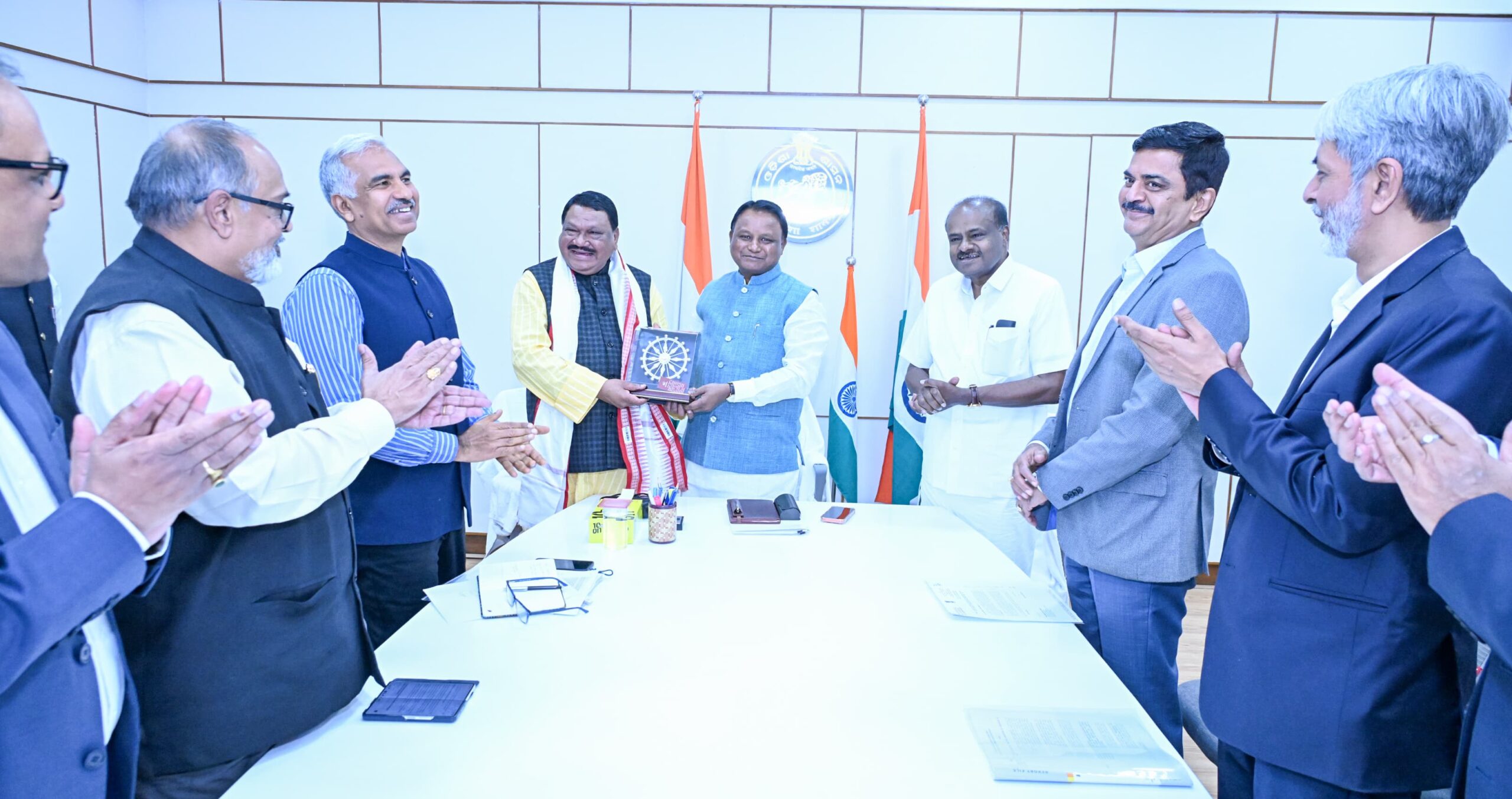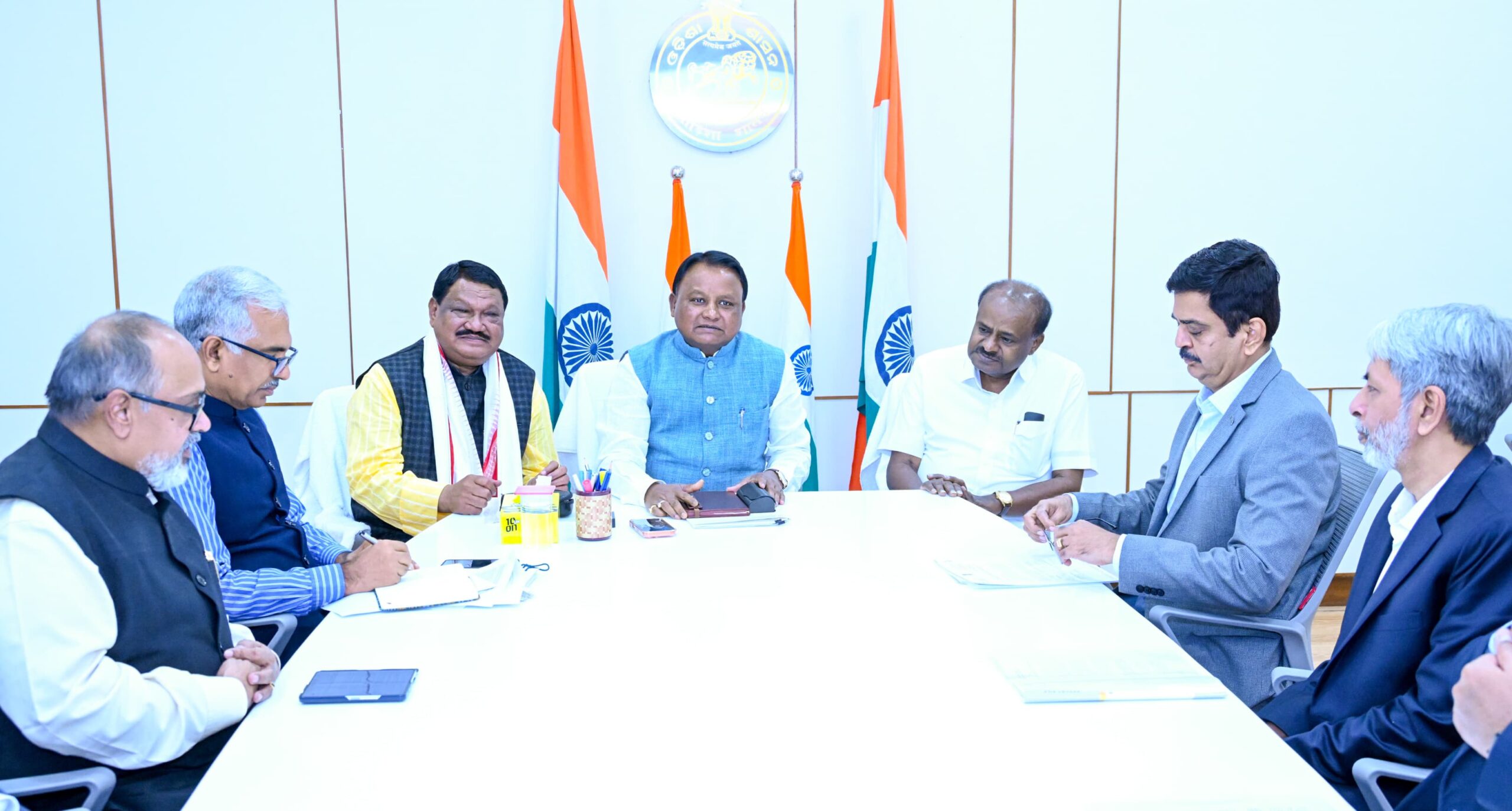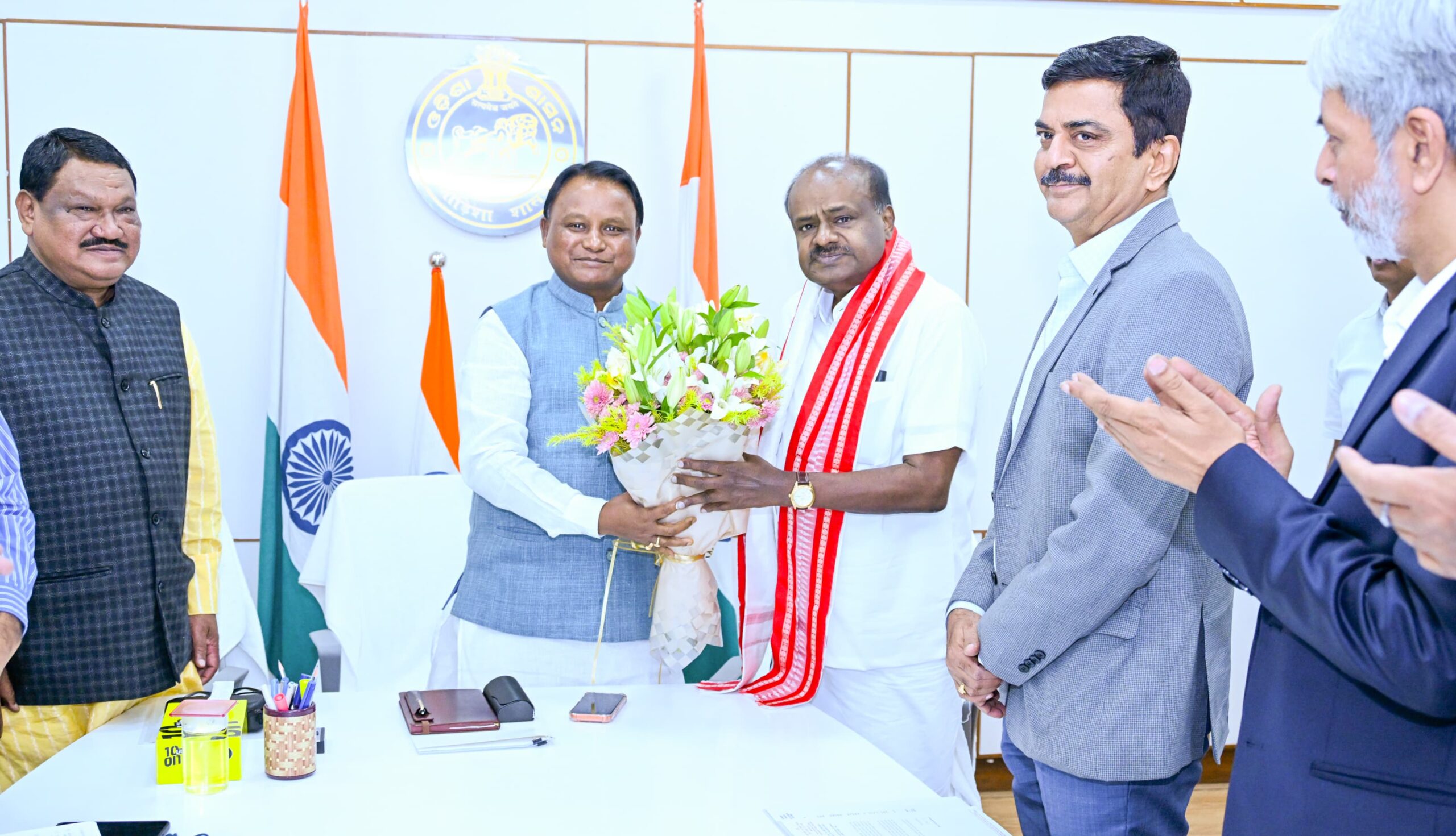Union Minister for Heavy Industries and Steel, H.D. Kumaraswamy, met Odisha Chief Minister Mohan Charan Majhi at the Lok Seva Bhawan today to deliberate on the expansion of the Rourkela Steel Plant (RSP). Union Minister for Tribal Affairs, Jual Oram, was also present during the discussions.
