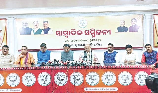 Senior BJP leaders, including State President Manmohan Samal, General Secretary Sarada Satapathy, Panchayati Raj Minister Rabi Narayan Naik, Parliamentary Affairs Minister Mukesh Mahaling, Deputy Chief Whip Gobinda Chandra Das, and MLAs Babu Singh and Ashrit Pattanayak, were present at the press conference.